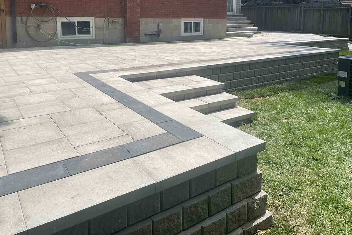 Backyard Interlock Stone Patio with Steps & Ramp